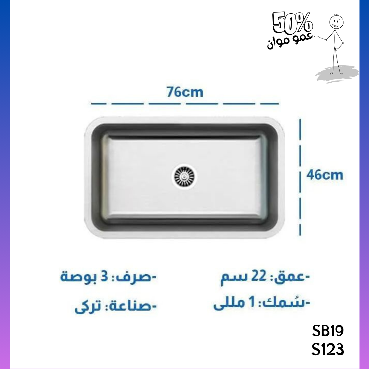 - الحوض من الاستانلس ستيل كورى الصنع مقاس 82*50 سم.